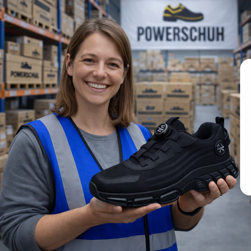 PowerSchuh begleitet dich durch lange Arbeitstage – ergonomisch, rutschfest und geprüft nach höchsten Standards.